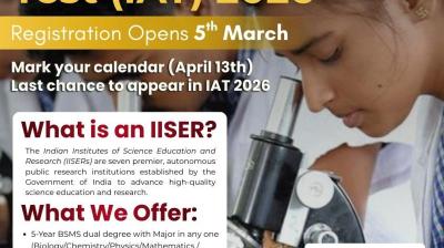 आईआईएसईआर में आईएटी 2026 माध्यम से प्रवेश के लिए ऑनलाइन रजिस्ट्रेशन की अंतिम तिथि 13 अप्रैल, 2026