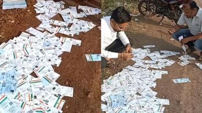 लोगों को बांटने की जगह रोड पर फेंक दिए सैकड़ों आधार कार्ड, पोस्ट ऑफिस कर्मियों की लापरवाही उजागर