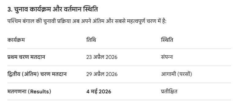 कोलकाता। पश्चिम बंगाल विधानसभा चुनाव 2026 के निर्णायक मोड़ पर केंद्र सरकार का यह फैसला राज्य की सुरक्षा व्यवस्था और चुनावी स्थिरता को लेकर एक बड़ा संकेत है। 29 अप्रैल को होने वाले दूसरे चरण के मतदान और 4 मई की मतगणना से ठीक पहले प्रशासन में निरंतरता बनाए रखने के लिए डीजीपी सिद्ध नाथ गुप्ता का सेवा विस्तार अत्यंत महत्वपूर्ण माना जा रहा है।